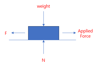 마찰계수(μ)는 두 물체가 접촉하여 있을 때, 접촉면에 작용하는 수직력(N)과 서로 자유롭게 미끄러지는 것에 저항하는 마찰력(F)의 비율이다. 수평으로 당기거나 미는 물체의 경우 수직력(N)은 단순히 중력(or weight)이다.