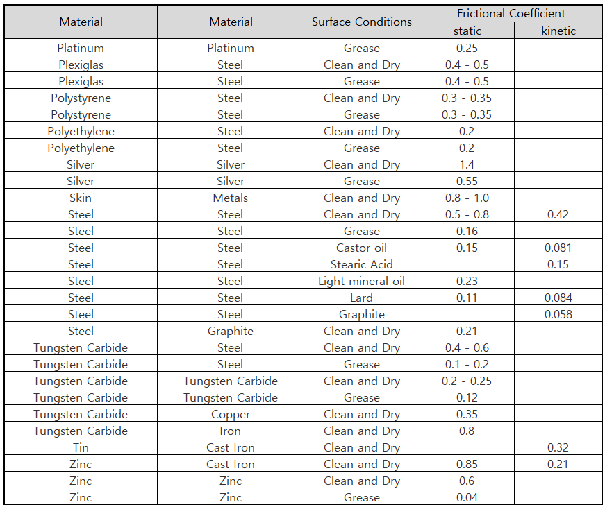 금속의 마찰계수 표